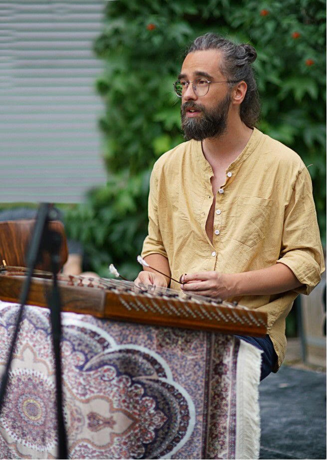 2012 ve 2014 yıllarında bu enstrümanı layıkıyla öğrenebilme arzusu ile İran’a seyahatlerim oldu. Daha önceleri de takip ettiğim usta santur müzisyenlerinden oluşan santur beşlisi ‘Santur Navazan Ensemble’ üyelerinden Siamak Aghaei, Ali Bahramifard ve Bahman Behmaram gibi iranlı santur ustaları ile iletişim kurarak tanışma fırsatım oldu. Ali Bahramifard ile yoğun bir ders sürecimiz oldu ve usta çırak ilişkisinden öte, yıllar içerisinde samimi bir bağımız oluştu.