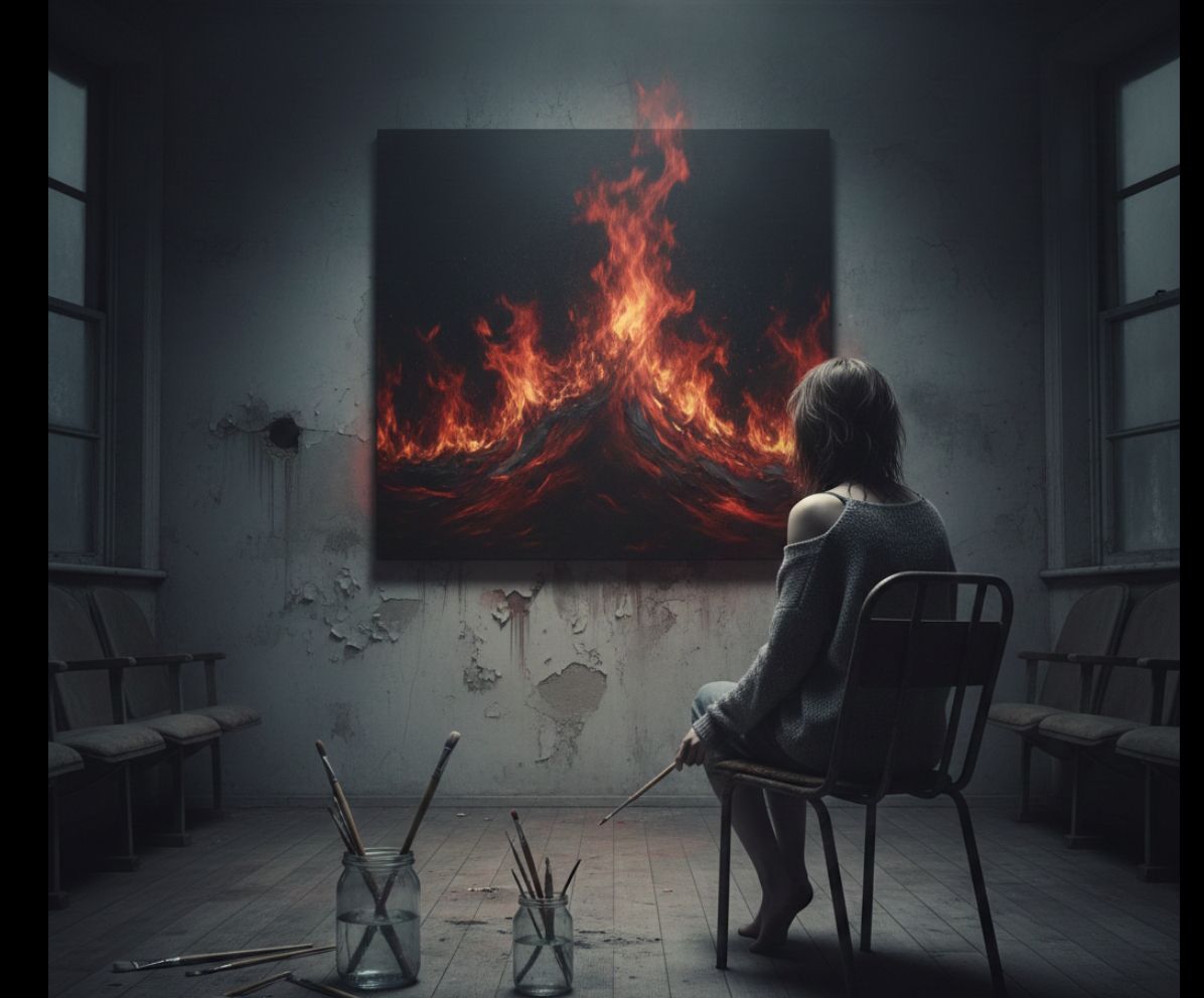 Ellerimin titrediğini hissediyorum. Odam buz gibi. Parmak uçlarım bu odada neye dokunsa soğuktan uyuşmaya başlıyor. Aylar önce siyah astar attığım tuval beni izliyor, “Benden başka kimse yok, biliyorsun değil mi?” diyor. Burada başka kimse yok. Dışarıda da yok. İşin aslı, dünyada benden, bu tuvalden ve içimde büyüyen o alevden başka bir şey var mı emin değilim. Varlıktan uzaklaşıyorum. Aklımda son kurduğum cümleler, son konuştuklarımız yankılanıyor. Zor olduğunu söylemiştim. İnsanın kendi içindekileri görebilmek için ve gösterebilmek için bir kağıda muhtaç olmasının zor olduğunu söylemiştim. Duymuştu beni. Duymuştu ama anlamış mıydı?İşte yine bu soğuk odadayım ve kendimle yüzleşmek zorundayım. Keşke şu harap olmuş duvarda avucum kadar bir delik olsa da…“Görsünler istiyorsun.” diye fısıldıyor siyah tuval.Evet, bunca şeye rağmen görsün diye çabalıyorum. Saçmalıyorum. Çizdiklerimden anlaması için ben olması lazım. Bu soğuk odada yanıma oturması lazım. Demir sandalyeye her dokunduğunda parmak uçlarının yanması lazım. Yanması lazım, evet. İçten içe yanması lazım. Kırılıyorum. Elimdeki cılız fırçayı da kırmak istiyorum, halbuki onun ne suçu var? Ne önemi var bu kadar hissetmenin? Ne mantığı var…Vakit geçiyor. Fırçalar cam kavanozdaki suyun içinde titremeye başlıyor. “Hazır değilim” diyorum. Hiçbir duyguyla yüzleşmeye hazır değilim. Benim sohbetim tuvalle ama kahrımı fırçalar çekiyor. Oturduğum sandalyede küçülüyorum. Sırtım bükülüyor, kemiklerimin birbirine batmaya başladığını hissediyorum.Sanırım üşüyorum. Hayret! İçimdeki alevi durmadan körüklememe rağmen nasıl üşüdüğümü anlamıyorum. Arkama bakıyorum. Tekrar ve tekrar duvarda bir delik arıyorum. “Kimse görmeyecek.” diyor içimdeki ses. Dünya üzerinde bir tek üçümüzün kaldığını yeniden fark ediyorum. Fark etmek ağır geliyor. Yalnız hissediyorum.Fırçayı elime alıyorum. Kendiliğinden hareket etmeye başlıyor sanki. Bir boyadan ötekine, cam kavanozdan tuvale yürüyor. “Daha fazla beklersen soğuktan öleceğiz.” diyor. “Haklısın.” diye geçiriyorum içimden. Müdahale etmiyorum. Ne renk kullandığını da hangi sırayla boyadığını da hatırlamıyorum. Tuvalin değişimini izliyorum. Parmaklarım hareket ettikçe kemiklerim rahatlıyor. Yangından burnuma gelen is kokusu zayıflıyor. Çıtırtı sesleri azalıyor. Kırmızılara boyanan tuvali canlı bir tiyatro performansı gibi izliyorum. Tek seyircisi benim. Arkamdaki tüm koltuklar boş.Vakit geçiyor. Bileklerim yorulup fırça, su dolu kavanoza düştüğünde seyirci koltuğundan ayağa kalkıyorum. Gösterisini bitirmiş tuval, soğuk ve karanlık odada parlıyor. Alkış bekliyor, biliyorum. Sırtı dik, yüzü ak ve görevini tamamlamış tuval benden takdir bekliyor. Bense onu göremiyorum.Önce üstten, sonra alttan bakıyorum ona ama tuvali bulamıyorum. “Sen de mi gittin.” diye mırıldanıyorum şaşkınlıkla. Tek görebildiğim odaya ışık saçan alevler oluyor. “Yanıyorsun.” diyorum, “Artık dünyada sadece ikimiz kaldık ve sen de yanıyorsun.”